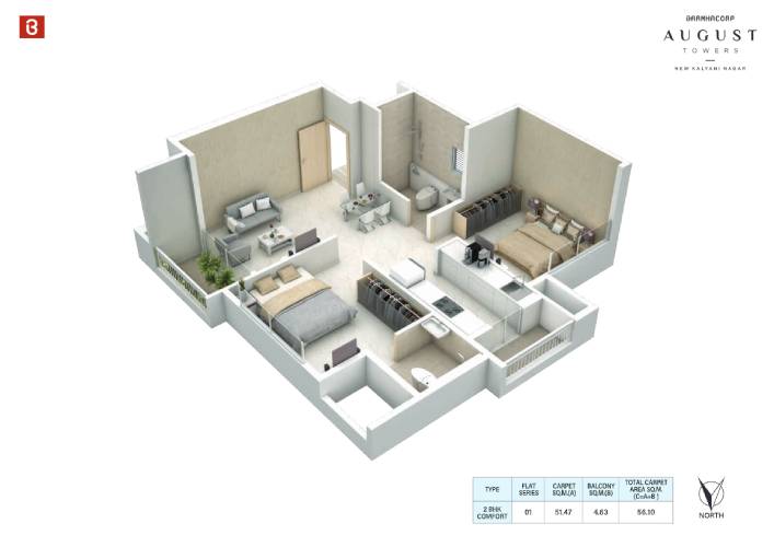 Elegantly designed 2 BHK premium residences at Bramhacorp August Towers, situated in New Kalyani Nagar, Pune, guarantee a lifetime of luxurious comfort and tranquility.